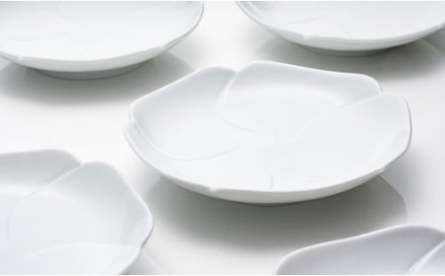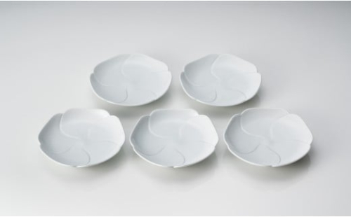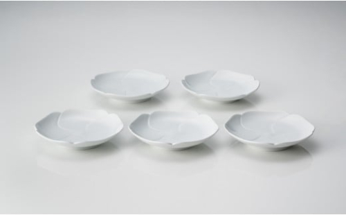 日常使いからおもてなしまで、毎日使いたくなる、やさしい白磁の花小皿5枚組です。