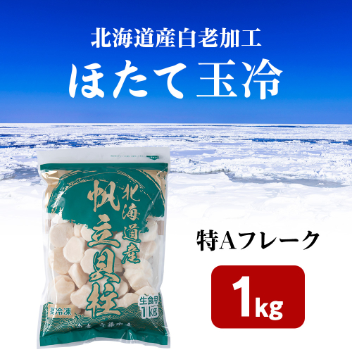 北海道産 白老加工 ホタテ玉冷〈特・Aフレーク〉1kg<斉藤水産>玉冷 貝柱