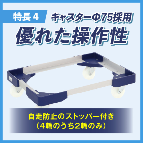 5.キャスターφ75を採用。2輪はストッパー付き(自走防止)
