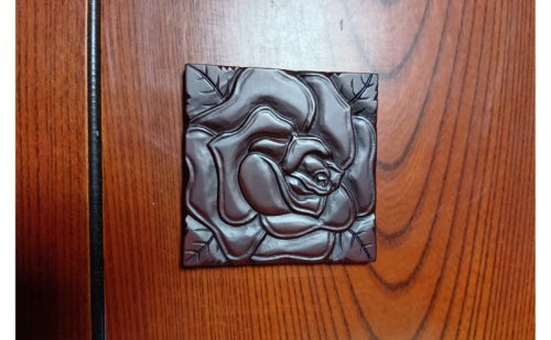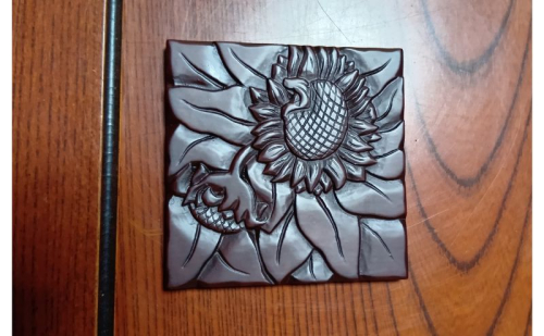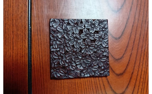 鎌倉彫の技法を用いたこのコースターは、草花の絵柄をダイナミックに施し