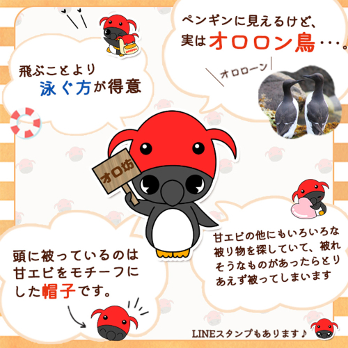 日本では天売島でしか繁殖していない、「オロロン鳥」をモチーフにした魅力あふれる羽幌町のキャラクターグッズとして、ご自宅用はもちろん、羽幌町ファンへの贈り物にも最適です。