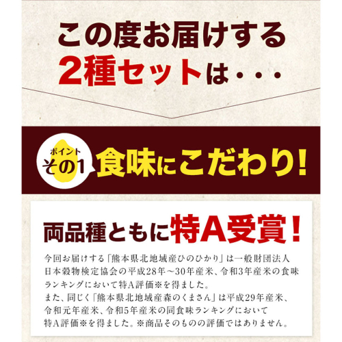 令和7年産 無洗米【18ヶ月定期便】ひのひかり 森のくまさん 2種 食べ比べ 10kg (5kg × 2袋) 20kg (5kg × 4袋) 計18回お届け 無洗米 熊本県産 単一原料米 ひの 森くま 熊本県 長洲町《お申込み翌月から出荷》