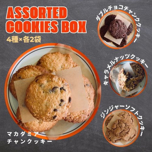 クッキー アソートボックス 4種8袋入り 【クッキー 手作り ホームメイド 焼菓子 焼き菓子 お菓子 洋菓子 詰め合わせ チョコ マカダミア キャラメル ジンジャー ギフト 美味しい プチギフト 手土産 贈り物 土産 個包装】