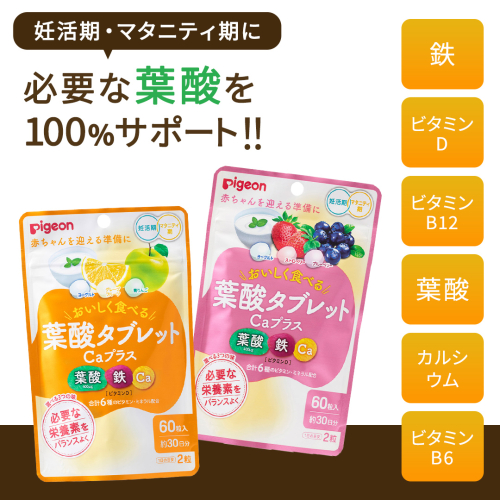 - 【 ピジョン 】 葉酸 タブレット Caプラス 2種セット(合計60日分) ヨーグルト・グレープフルーツ・青りんご & ヨーグルト・ストロベリー・ブルーベリー 妊娠 妊娠中 妊婦 マタニティ マタニティー 妊活 レディース 葉酸サプリ サプリ 栄養補助食品 鉄分 カルシウム 出産準備 葉酸サプリメント 錠剤 ビタミン 亜鉛 [BD258-NT]