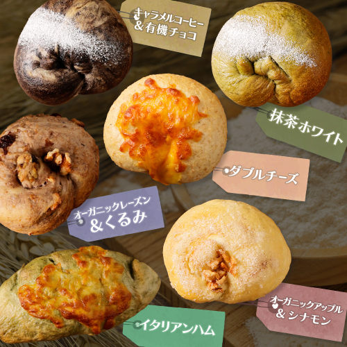 そこに有機食材を多用した具材を合わせて成形し、「砂糖を入れたお湯で数十秒茹でてから焼く」という、ベーグル伝統製法を行うことにより、しっかりとした外側の皮と、しっとりもっちりした内側の、最高食感のベーグルが生まれます。