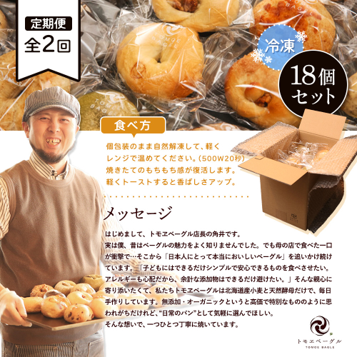 - 【定期便:全2回】トモヱベーグル ギフトセット「北の麦輪(むぎわ)18個セット」【33000401】