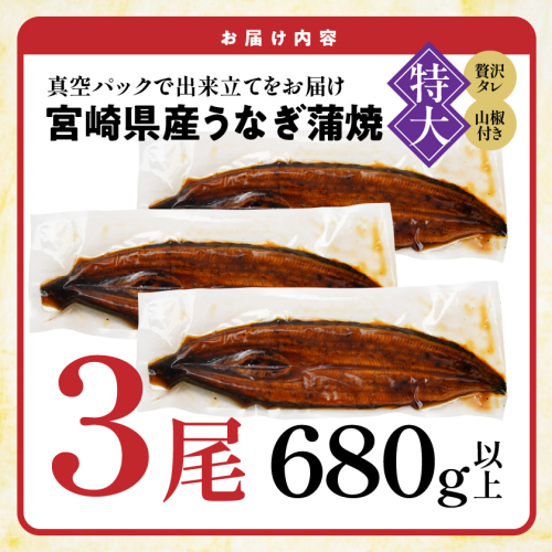 【丑の日】宮崎県育ちの【特大】うなぎ蒲焼3尾680g以上≪山椒・たれ付≫≪7月20日~25日お届け≫_29-M301-UG