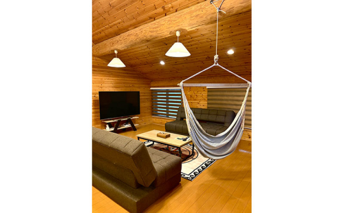 ハンモックやソファを備えたくつろぎの空間に、キッチンや広々とした洗面所も完備し、ゆったりと快適にお過ごしいただけます。