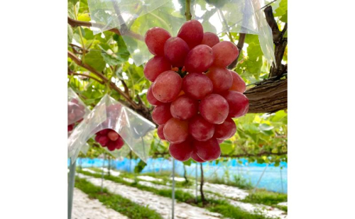 種なし・皮ごと食べられる、赤色ぶどうです。