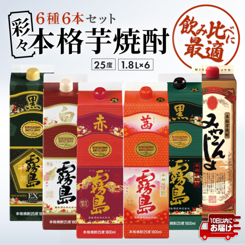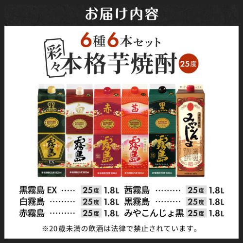 • 彩々本格芋焼酎25度1.8Lパック6種6本セット≪みやこんじょ特急便≫_AF-8203
