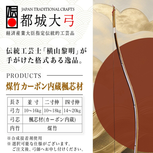 都城大弓【横山黎明】 煤竹 カーボン内蔵楓芯材_YL-O2-003