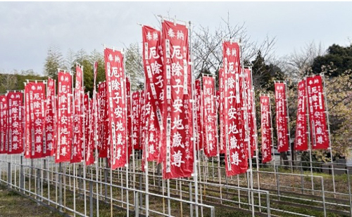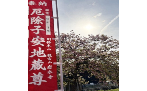 高野山真言宗別格本山である岩水寺は、神亀二年(西暦725年)開創。 総本尊薬師如来は、嵯峨天皇の病気平癒の祈願をされました。 また本尊の厄除子安地蔵(国指定重要文化財)は、女性の母親の仏様として「家をまもるは岩水寺」と呼ばれております。古くから安産祈願や家内安全祈願。縁切り祈願のお寺として有名です。そのお薬師様とお地蔵様を表す梵字を木に彫り、護摩祈祷(炎の祈祷)を修法した上で、皆様の開運厄除を祈願させて頂きました。