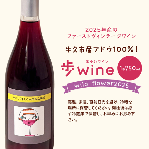歩wine wild flower2025 ( 750ml ) 日本ワイン 牛久市 ブドウ 自然派ワイン 無濾過 ファーストヴィンテージ マスカット・ベーリーA ビジュノワール メルロー バルベーラ ワイン 酒 赤ワイン わいん