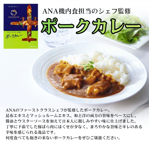 ANA機内食担当シェフ監修のこだわりのカレー! ANA国際線のファーストクラスでご提供している阿波尾鶏とマッシュルームのカレー3個、ANAの全クラス機内食を担当するシェフ監修のビーフカレー1個、チキンカレー1個、ポークカレー1個の計6個が入ったセットです。 【問】ANAあきんど株式会社 【製造所】有田食品株式会社      和歌山県有田市箕島743 ■関連検索参考キーワード: カレー レトルト レトルトカレー 本格的なカレー レトルト食品 和歌山特産 濃厚 コク 爽やか 辛さ 隠し味 自慢の逸品 味わい深い 本格的 名産品 ANAあきんど 和歌山県有田市