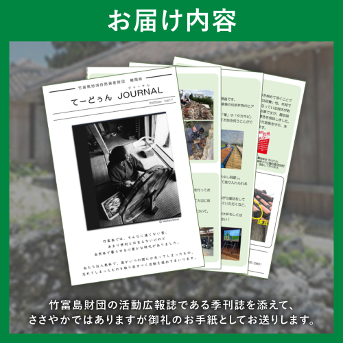 竹富島財団の活動広報誌である季刊誌を添えて、ささやかではありますが御礼のお手紙としてお送りします。