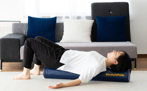 ストレッチポールに縦で仰向けで乗ると、まずアウターマッスル(外側の筋肉)がゆるみ、自然なストレッチ状態になります。さらに、背中で包み込むように乗ることでインナーマッスル(深層部の筋肉)が刺激され、関節や背骨の位置や並びが整い、姿勢が本来あるべき状態へとリセットされていきます。ストレッチポールはご家族皆さまでご使用いただけるコンディショニングツールです。