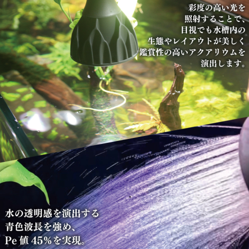電球タイプのアクアリウム専用ライト。異次元の彩度、水の揺らぎ、水草の育成に優れています。