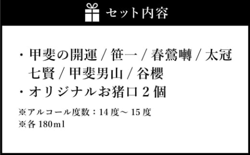 山梨の「山の酒」 純米酒 飲み比べ7本セット 日本酒 お酒 酒 セット 飲み比べ お猪口2個付き 14度~15度 国産 山梨県産