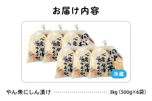 やん衆にしん漬け 3kg (500g×6) 北海道 ニシン 鰊 漬物 ごはんのお供 つけもの おつまみ R014-032