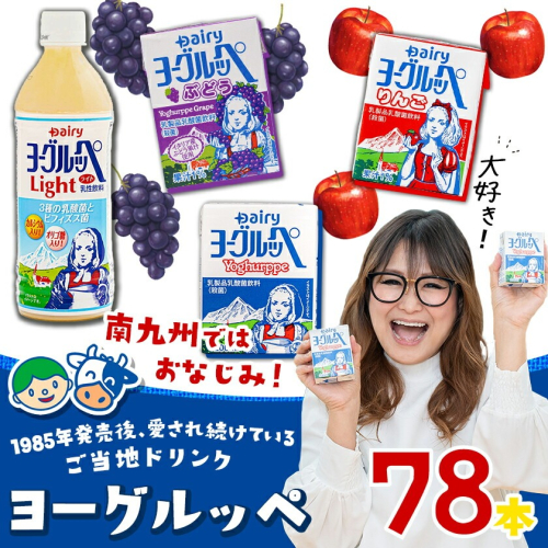 さらに、南九州で愛され続けているご当地ドリンク「ヨーグルッペ」の、定番、りんご味、ぶどう味の3種類をお届け!