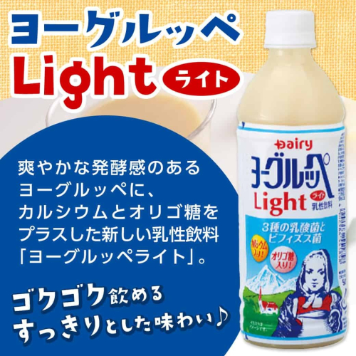 爽やかな発酵感のあるヨーグルッペにカルシウムとオリゴ糖をプラスした新しい乳性飲料「ヨーグルッペライト」は、ゴクゴク飲めるすっきりとした味わいに仕上げました。