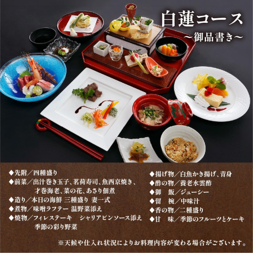 ※天候や仕入れ状況によりお料理内容が変わる場合がございます。