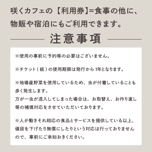 その咲くカフェの【利用券】=食事の他、物販や宿泊にもご利用できます。