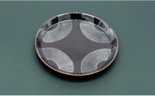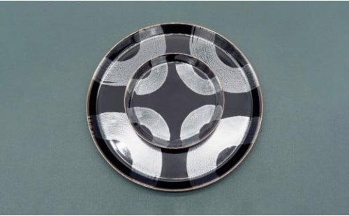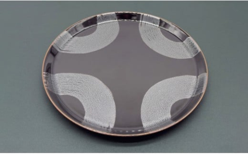 落ち着いた黒を基調とし、大胆な筆使いで全体にシルバーの曲線が施された華やかなプレートセット。