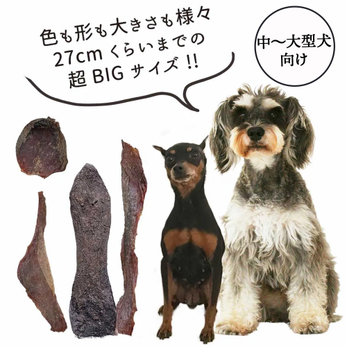 るべくカットせずそのまま乾燥させてますので中~大型犬にむいてます。