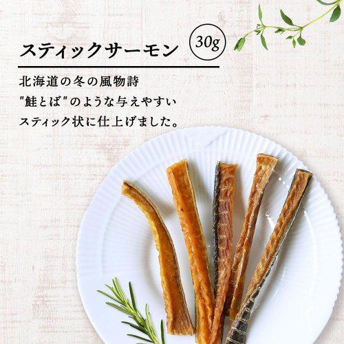 フィレの鮭をスティック状にしじっくり時間をかけて乾燥させたジャーキーです。