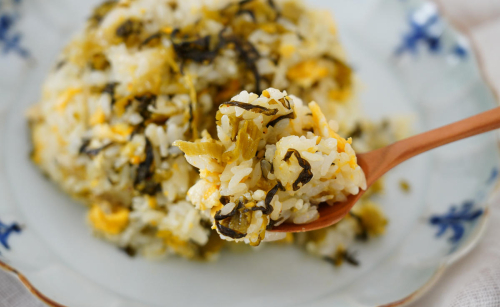 炊きたてご飯に混ぜるだけ!あっという間に風味豊かな高菜ご飯の出来上がりです。