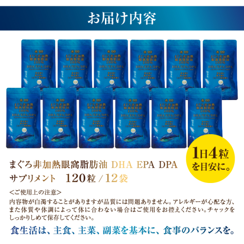 【内容】まぐろ非加熱眼窩脂肪油DHA EPAサプリメント:120粒/12袋