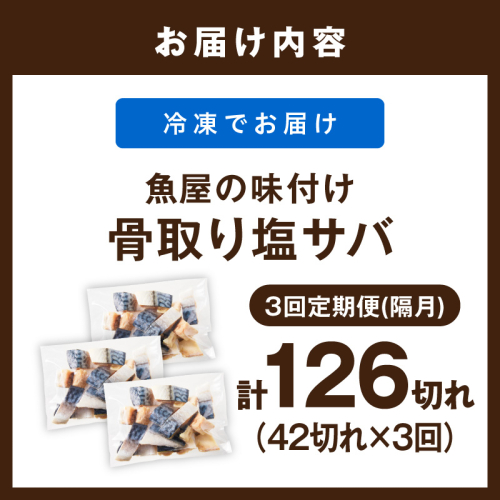 - 定期便3回【訳あり】魚屋の味付け骨取り塩サバ3パック(42切れ×3回/約3kg)※隔月