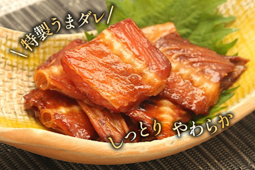 特製のうまダレで味付けし、しっとりとやわらかく仕上げておりますので、噛めば噛むほど旨味が口の中に広がる逸品です。