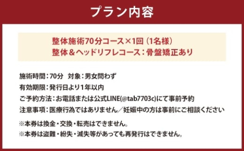- 深層筋まで届く 深部浸透整体 70分×1回 利用券 | ゆっくりしっかり全身リフレッシュコース 山梨県中央市 整体 施術 マッサージ 整体施術 肩こり 腰痛 全身疲労 コース 骨盤矯正 深部浸透整体