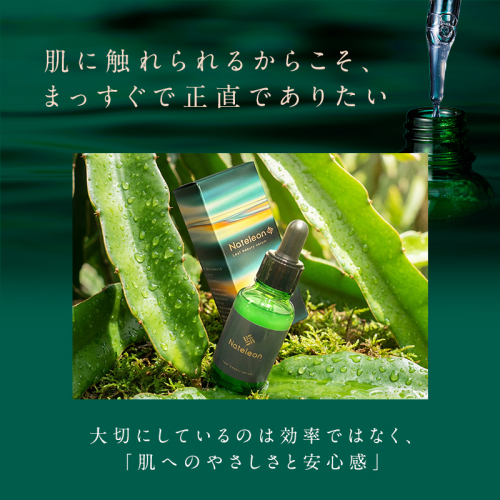 ナテレオン美容液は、自然の力を最大限に生かし肌本来の健やかさを引き出すことを目指しています。身近な人々の想いとユーザーの皆様の笑顔を叶えるために、これからも植物の力で優しく肌を包み込む製品づくりに取り組んでまいります。