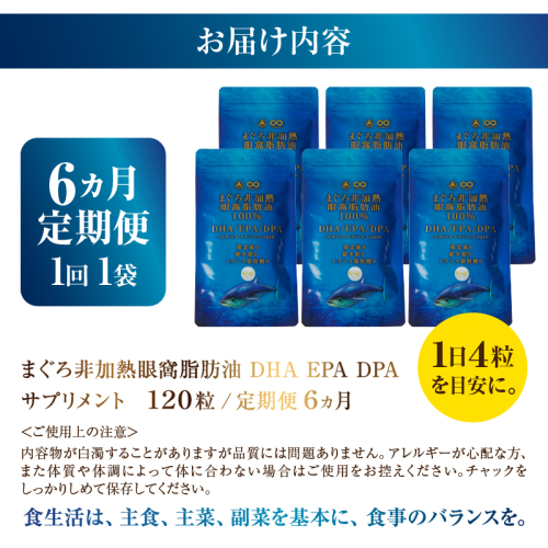 a60-039 【定期便6回】まぐろ非加熱眼窩脂肪油DHA EPAサプリメント:120粒/1袋×6か月