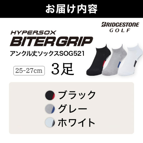 - 【14営業日以内に発送】ブリヂストンゴルフ 3足セット アンクル バイターグリップソックス SOG521《 靴下 くつした ソックス ゴルフソックス ブリヂストン バイターグリップソックス 》【2503T14010】