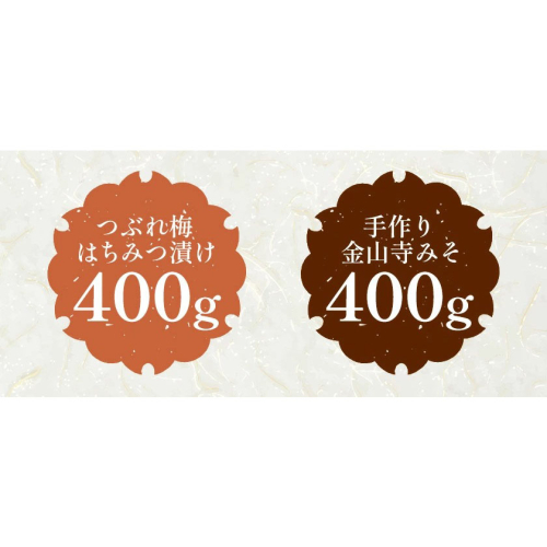 - 紀州南高梅 つぶれ梅(はちみつ漬)と 手作り 金山寺みそ 各400g 株式会社味季屋《30日以内に出荷予定(土日祝除く)》和歌山県 日高町 梅 梅干し 南高梅 はちみつ梅 味噌 ミソ