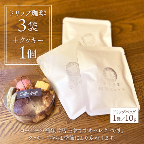 - ドリップ珈琲3袋+クッキーセット(ドリップバッグはコーヒー1袋/10g)
