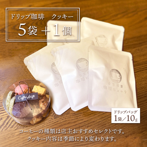 - ドリップ珈琲5袋+クッキーセット(ドリップバッグはコーヒー1袋/10g)