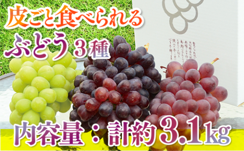 3種類の皮ごと食べられるぶどうの詰め合わせです。