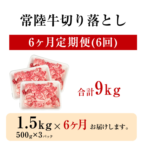 - 【 定期便 6ヶ月 連続 】 常陸牛 切り落とし 1.5kg ( 500g ×3袋 × 6回 ) (茨城県共通返礼品) 使いやすい パック A4 A5 ランク 黒毛和牛 国産黒毛和牛 和牛 国産 牛肉 牛 お肉 肉 ひたち牛 小分け [CD105sa]