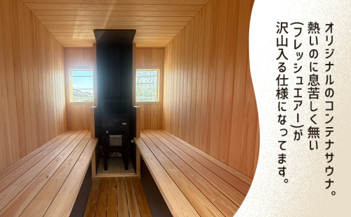 バレルサウナやコンテナサウナで温まった後は、⽬の前の阿多古川でクールダウンします。そして、自然の中で休憩することで、サウナ好きはもちろん、サウナ初心者や老若男女どんな方でも最高に「トトノウ」ことができます。