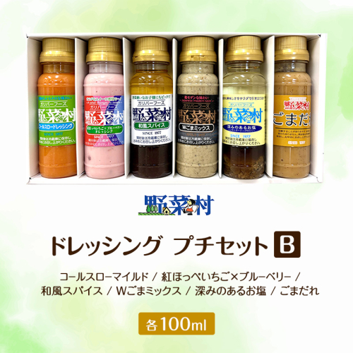 野菜村ドレッシング プチセット B(コールスローマイルド、紅ほっぺいちご×ブルーベリー、和風スパイス、Wごまミックス、深みのあるお塩、ごまだれ)各100ml 各1本 計6本 ドレッシング 調味料 静岡 浜松市