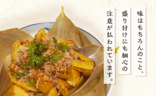 目でも楽しむ美しさ: 味はもちろんのこと、盛り付けにも細心の注意が払われています。食材の色彩や形を活かした美しい盛り付けは季節感を演出し、料理をアート作品のようにお楽しみできます。