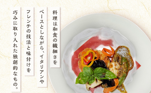 創作フュージョン: 料理は和食の繊細さをベースとしながら、イタリアンやフレンチの技法と味付けを巧みに取り入れた独創的なもの。伝統に縛られず、新しい美味しさを追求する大将のこだわりが光ります。