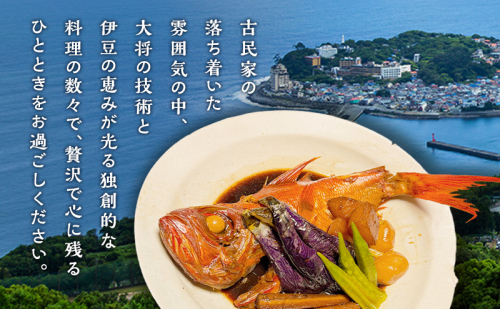古民家の落ち着いた雰囲気の中、大将の技術と伊豆の恵みが光る独創的な料理の数々で、贅沢で心に残るひとときをお過ごしください。