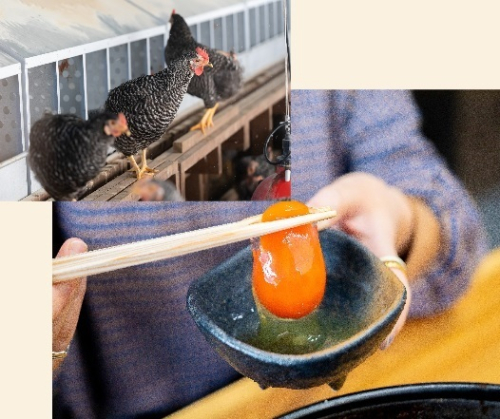和歌山のブランド鶏「紀の国みかんどり」和歌山で採れたみかんの果皮を乾燥させて飼料にし、その飼料で自然豊かな山麓ですくすくと育った元気鶏です。