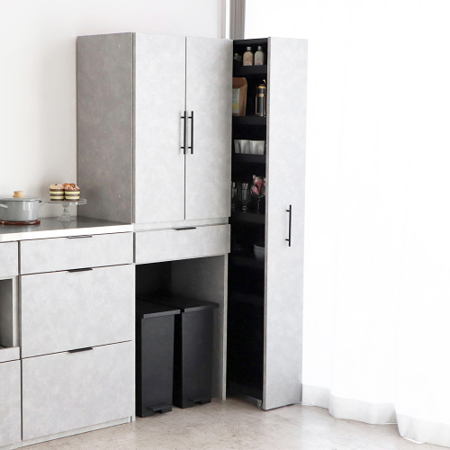 冷蔵庫横や食器棚横など、デッドスペースになりがちな部分を、